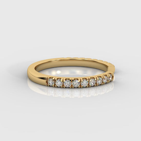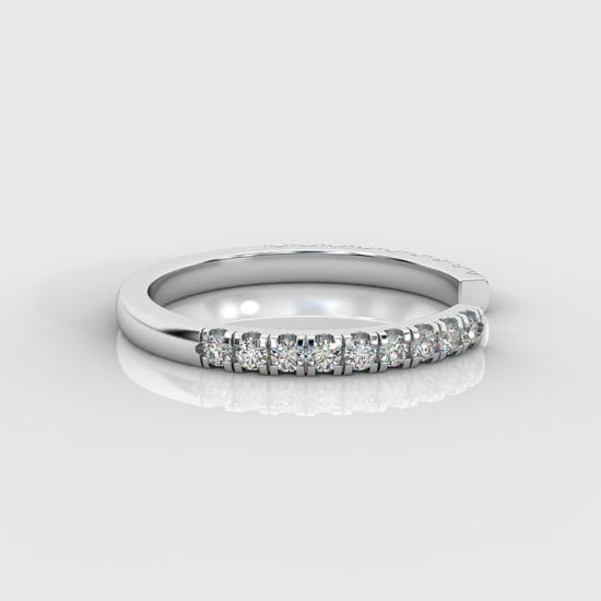 Graceful and radiant with sparkle, this open ring showcases a row of pavé lab-grown diamonds nestled in finely sculpted prongs that travel halfway around the band. Its sleek open silhouette gives it an airy, contemporary feel and allows it to sit perfectly flush with many engagement ring styles - making it ideal for stacking or wearing alone as an understated statement.