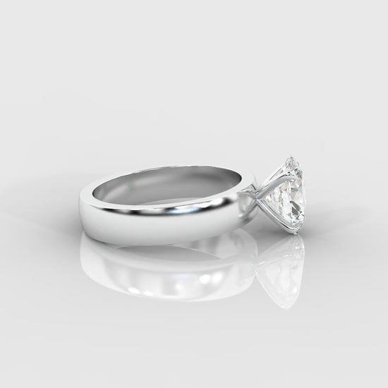 The Amelia Oval Cigar Band Solitaire Ring combines timeless beauty with modern strength. A brilliant oval-cut lab-grown diamond sits elegantly in a secure four-prong setting, its elongated facets radiating light with every movement.
