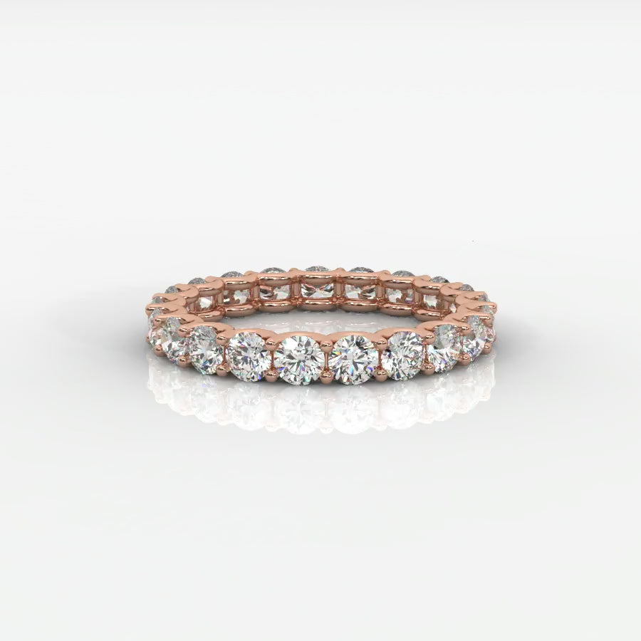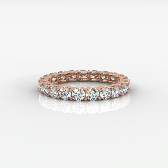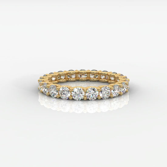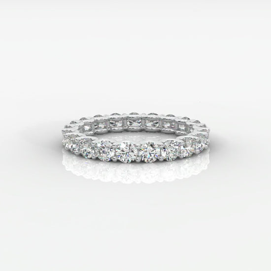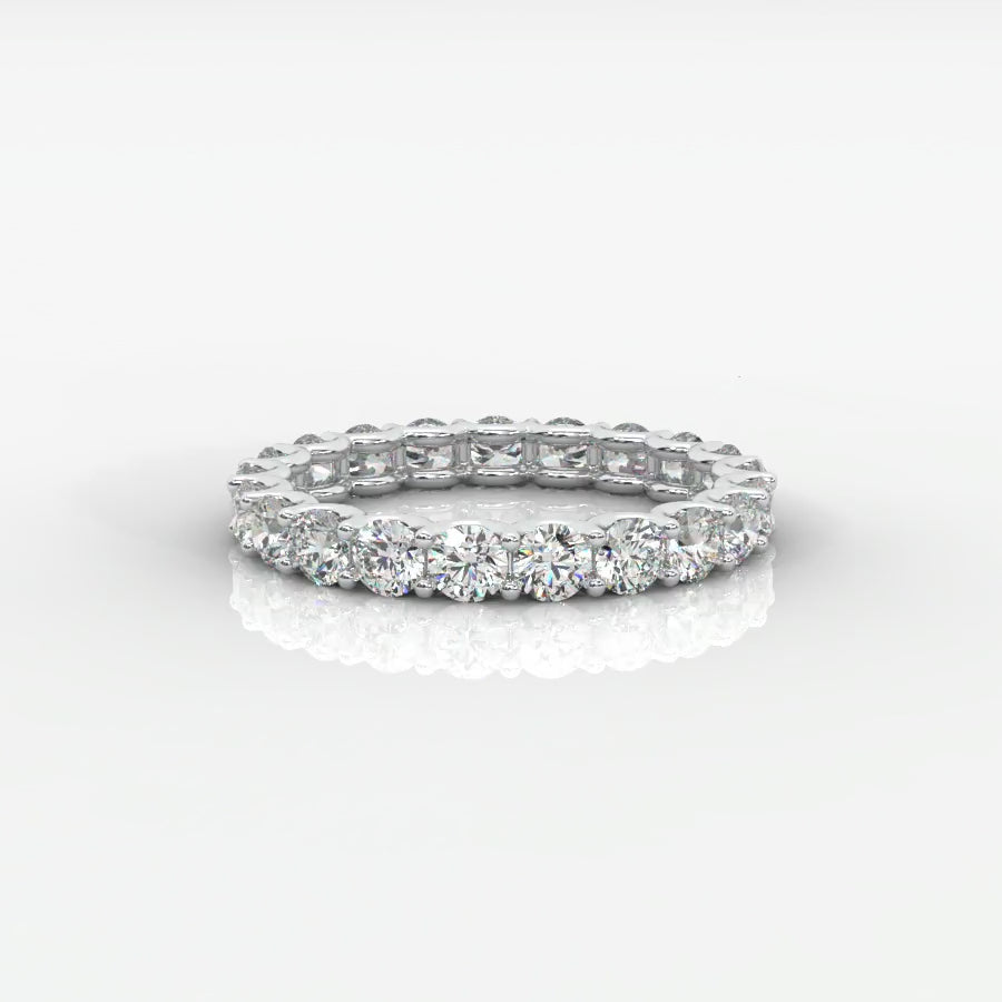 The Ava Eternity Band is a celebration of lasting love and timeless elegance. Featuring a continuous row of perfectly matched round brilliant lab-grown diamonds, each stone is set in a refined shared prong design that maximizes light and sparkle from every angle.