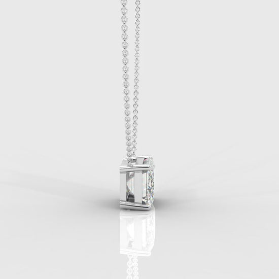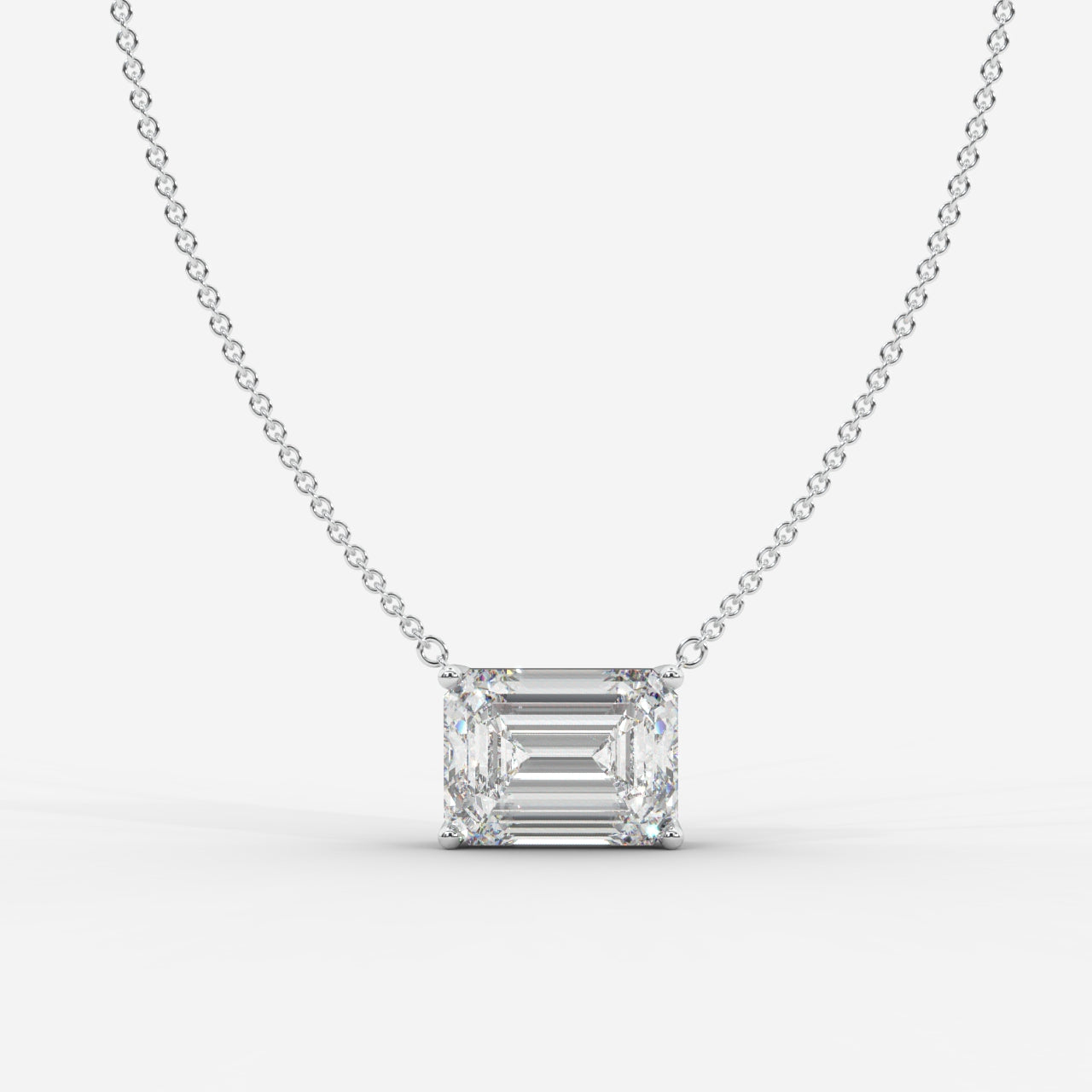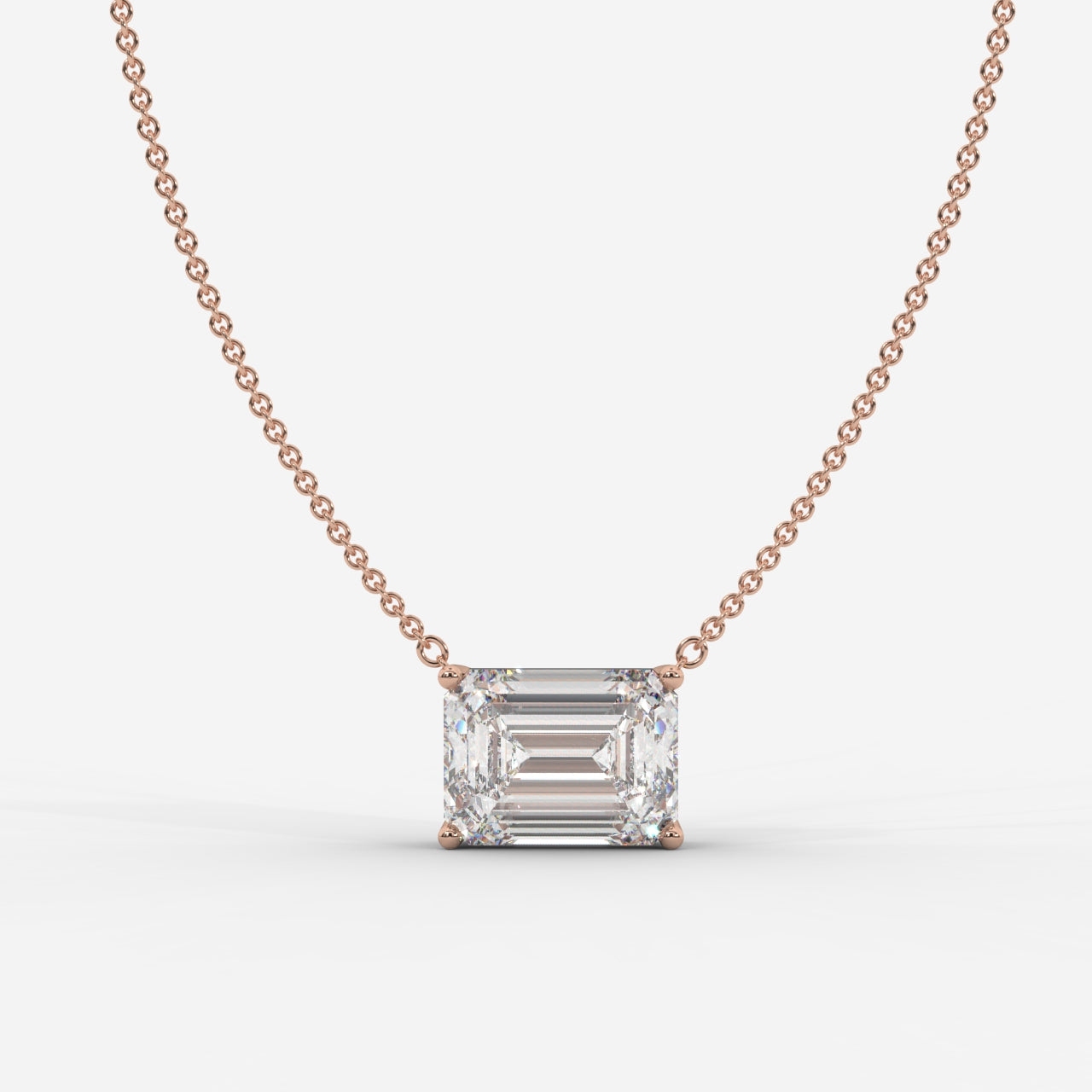 The Avery Pendant is a study in simplicity and sophistication. At its center is a stunning 1ct emerald-cut lab-grown diamond, set in a clean east-west orientation that brings a fresh, modern feel to a classic shape. Suspended from a delicate chain, the open setting allows light to pass through, showcasing the diamond’s elegant step-cut facets with every movement.