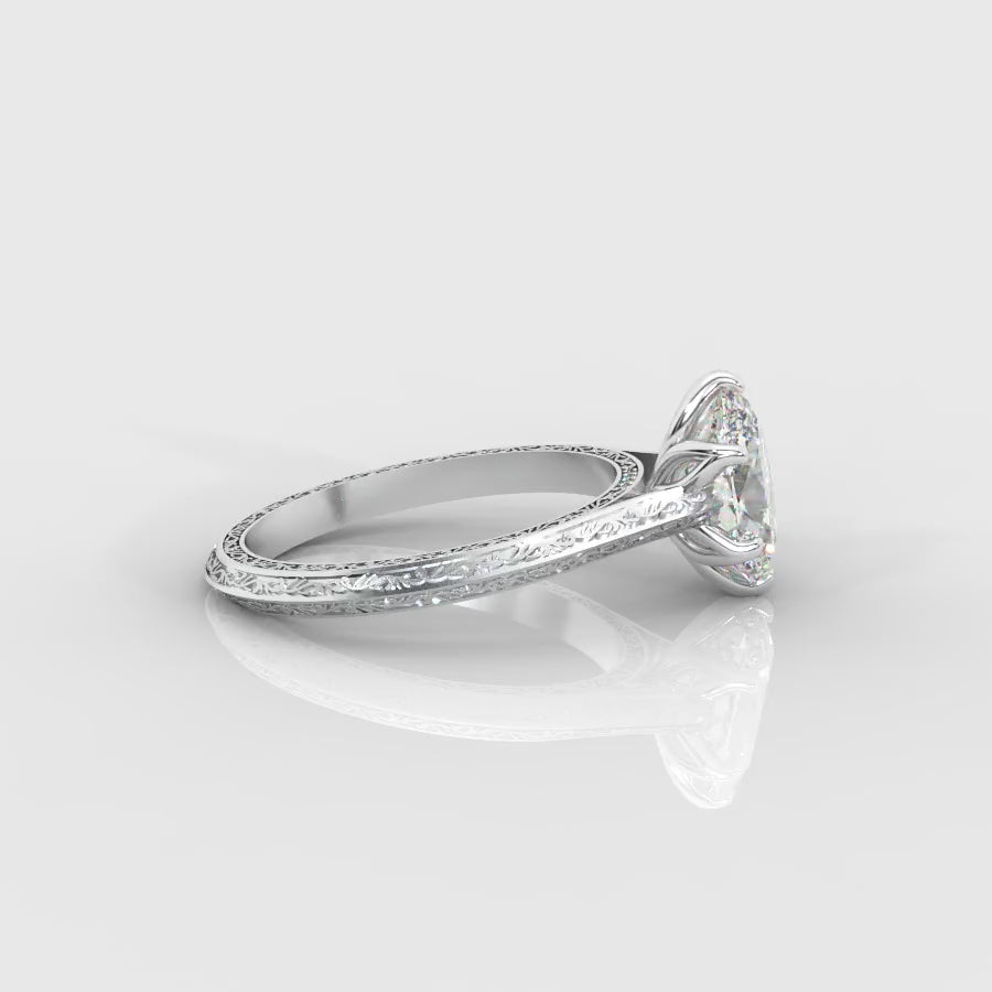 The band is adorned with intricate vintage hand-engraving, creating a rich, heirloom feel with delicate scrollwork and antique-inspired detailing along every curve. Elegant and soulful, this design blends romantic heritage with modern craftsmanship.