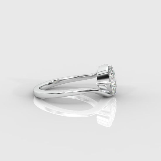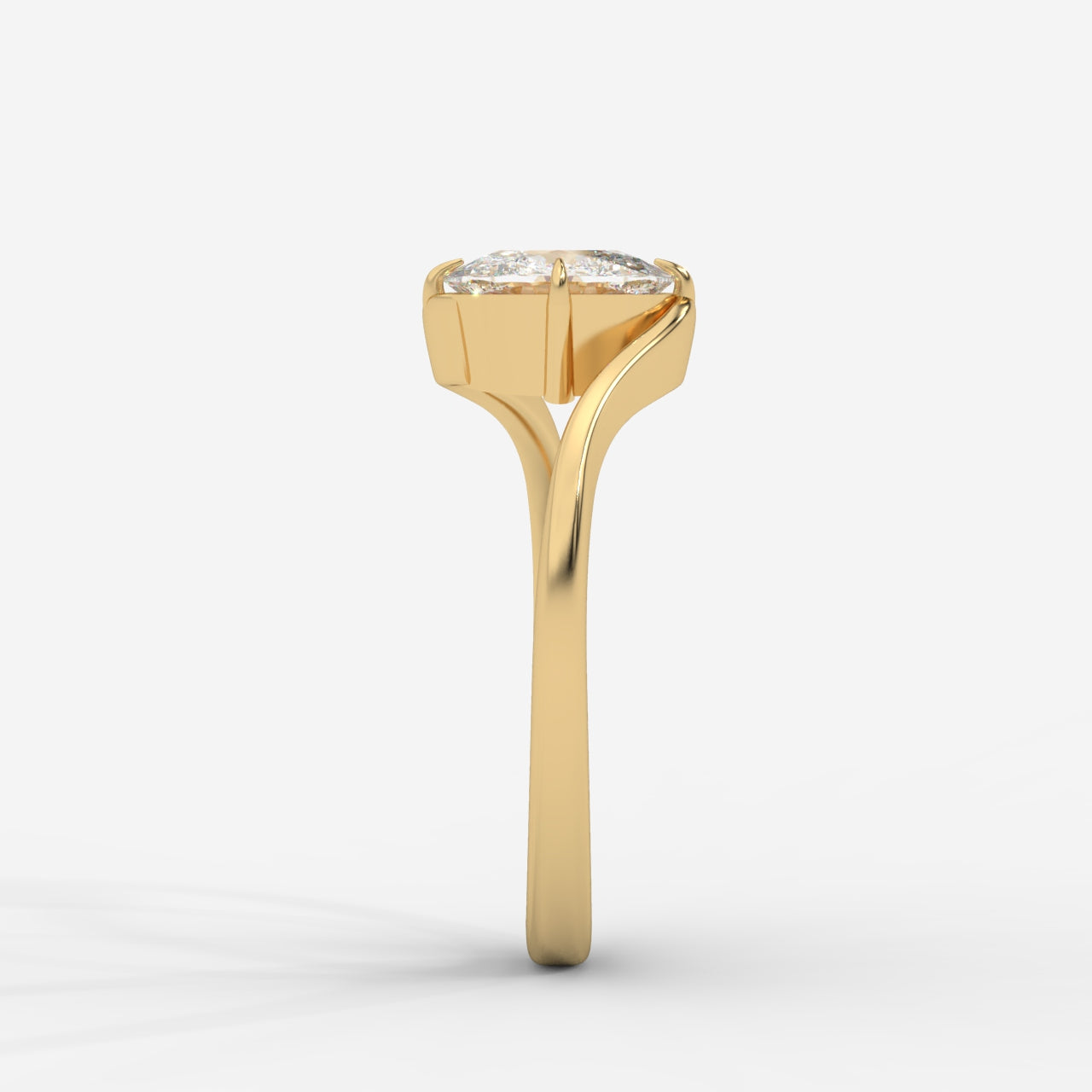 Crafted in your choice of 18K rose, yellow, or white gold, this ring is perfect for someone who values clean lines and unexpected details. The marquise diamond is custom-cut and hand-selected for its premium E or F color and eye-clean VVS clarity, ensuring maximum brilliance and sparkle from every angle.