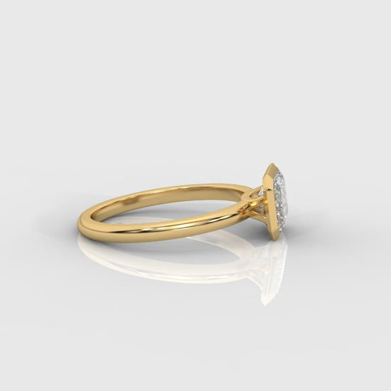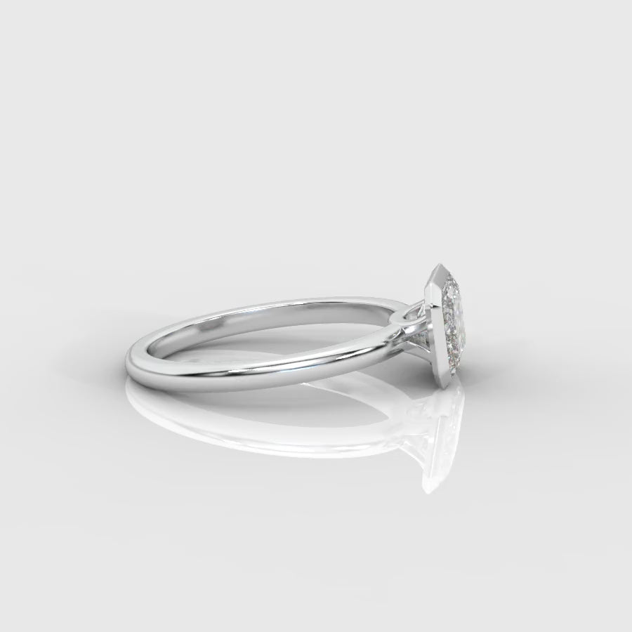 The Eden Emerald Bezel Solitaire Ring embodies modern minimalism and refined sophistication. A striking emerald-cut lab-grown diamond is set in a sleek bezel, its hall-of-mirrors faceting catching the light with every movement for an understated yet powerful brilliance.
