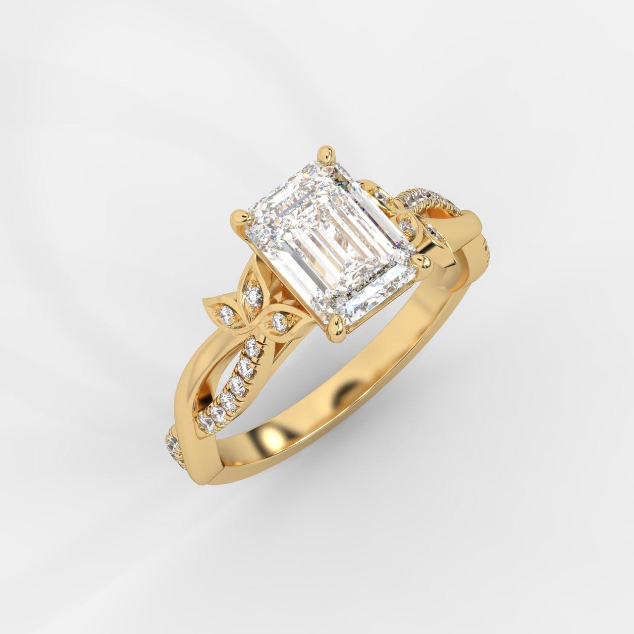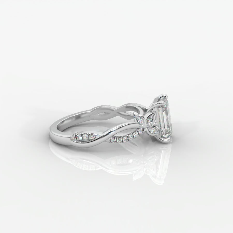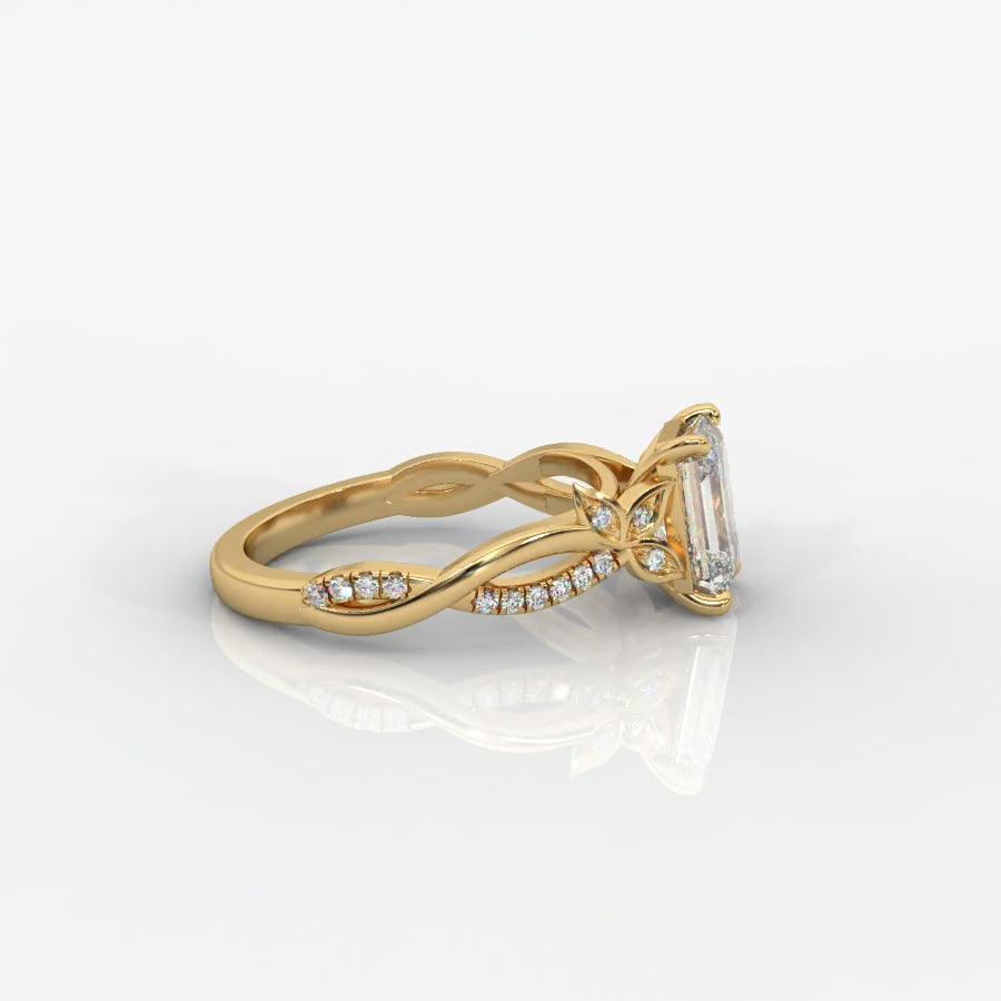 he Ivy Emerald Solitaire Ring captures the beauty of nature and modern elegance in perfect harmony. A striking emerald-cut lab-grown diamond takes center stage, its mirror-like facets radiating sophistication and brilliance.