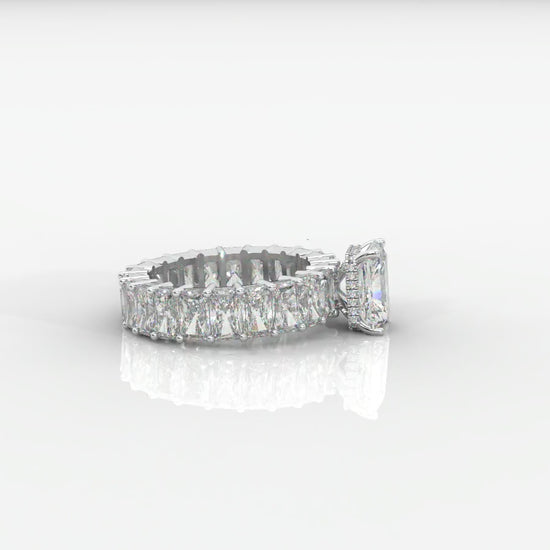 The Luxe Eternal Radiance Ring is a bold declaration of everlasting love. A dazzling radiant-cut lab-grown diamond sits proudly at the center, perfectly complemented by a full eternity band of radiant-cut diamonds that encircle the finger in uninterrupted brilliance. A delicate hidden halo beneath the center stone adds extra sparkle, ensuring this ring shines from every angle.