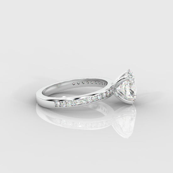 The Lydia Oval Channel-Set Solitaire Ring blends classic elegance with modern refinement. A brilliant oval-cut lab-grown diamond is set in a secure four-prong setting, its elongated shape radiating brilliance and grace.