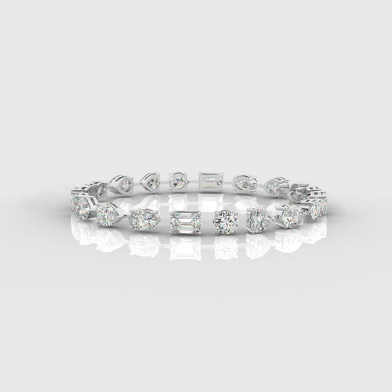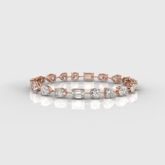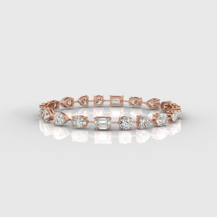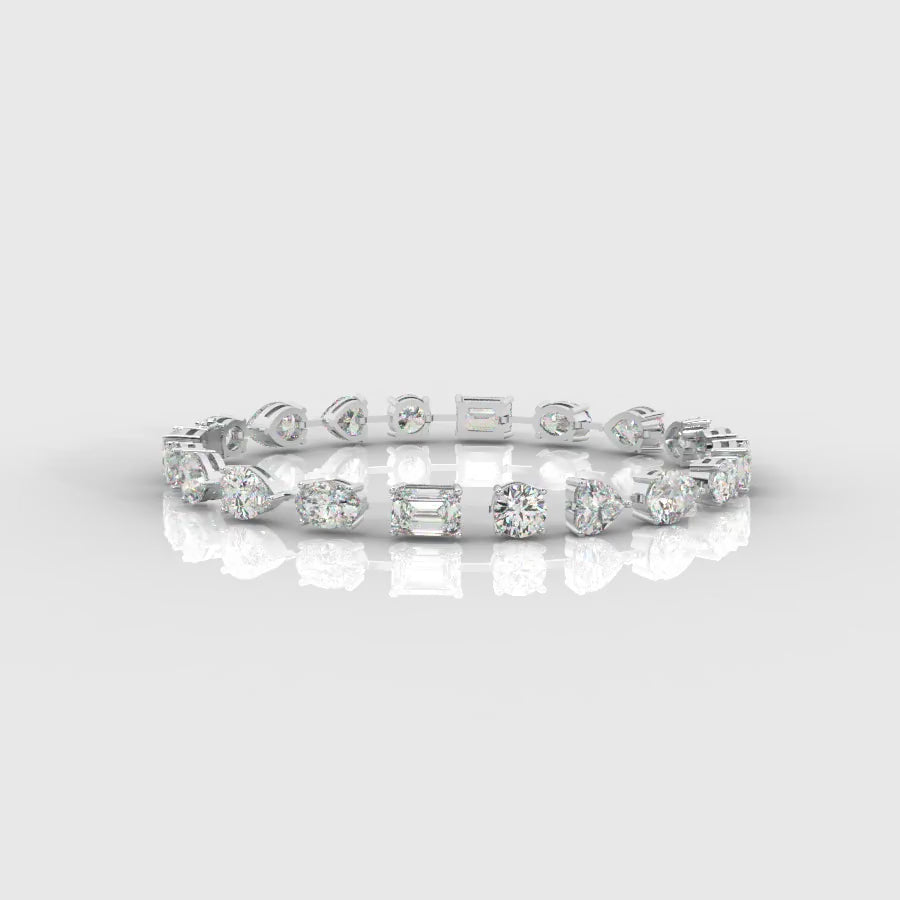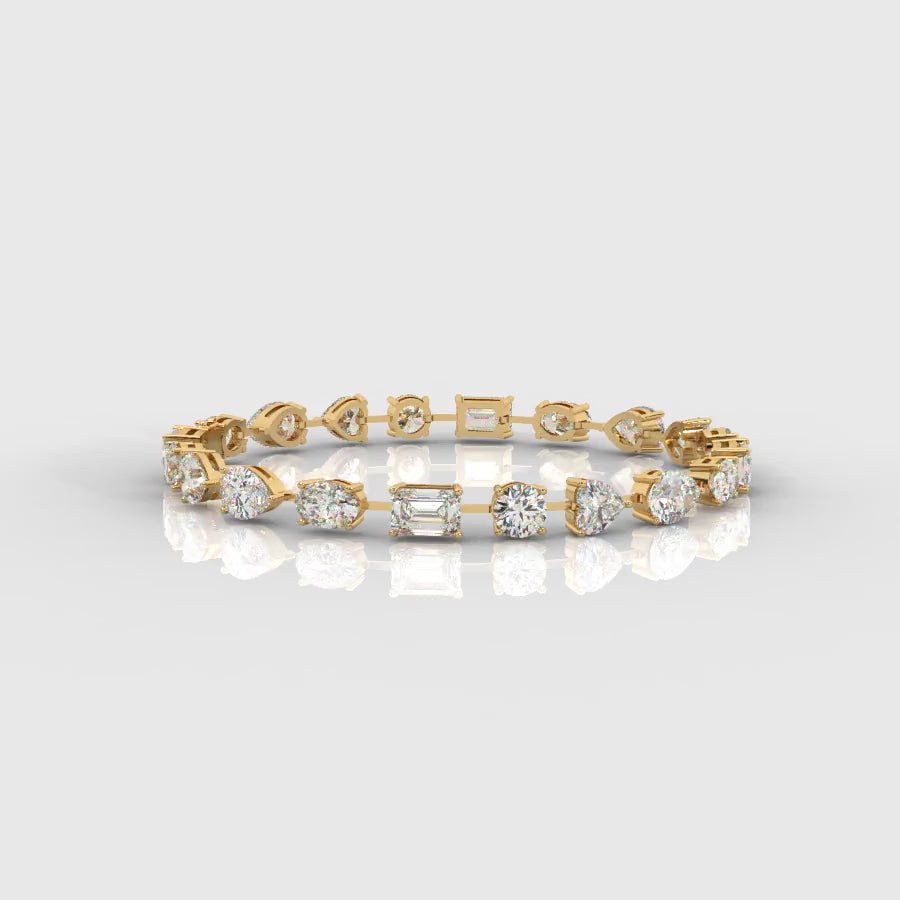 The Mona bracelet features a refined sequence of mixed-cut lab-grown diamonds, including round, oval, pear, and emerald shapes, designed to catch the light from every angle. Each stone is thoughtfully set to highlight its individual character while flowing seamlessly into a balanced, elegant silhouette.
