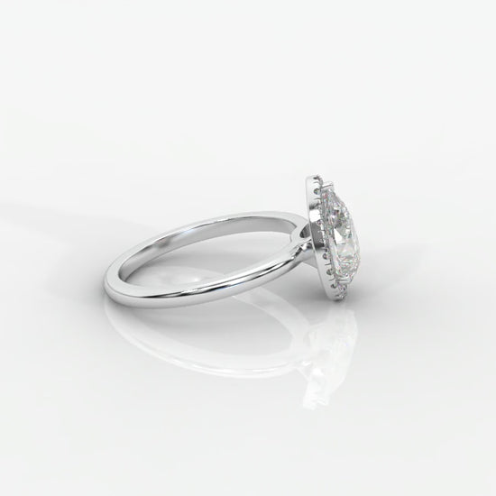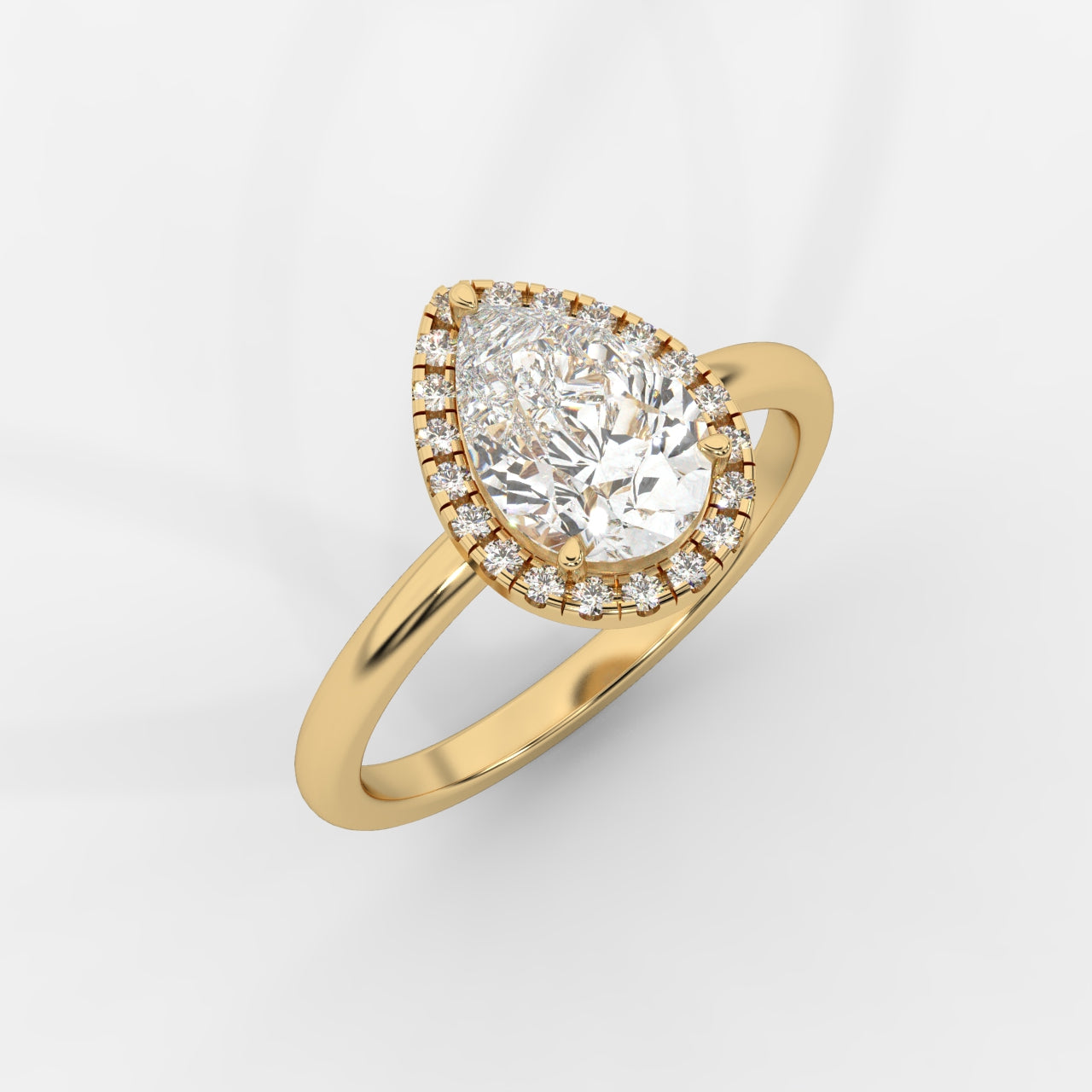 The Willow Pear Halo Ring is a graceful blend of romance and timeless elegance. Featuring a brilliant pear-cut lab-grown diamond framed by a sparkling halo of round lab diamonds, this design enhances the natural brilliance and elongating beauty of the pear shape.